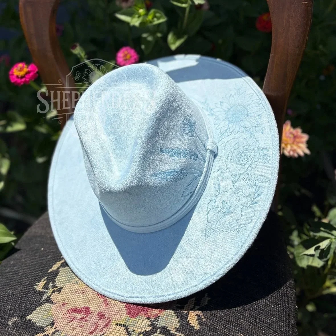 Small design: Includes one location on top or bottom of hat band or brim. Design coverage area approximately 6-8 inches.